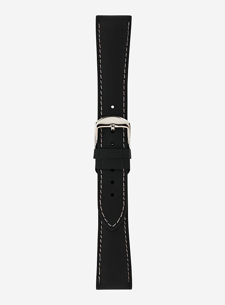 Cinturino per orologio in silicone nero con cuciture a contrasto in rosso, blu, verde, grigio o bianco.