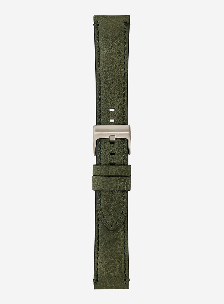 Cinturino per orologio in pelle Tuscania vintage, pelle italiana. Fibbia in acciaio, fodera in pelle, finitura tranciata e struttura imbottita con cuciture in tinta.
