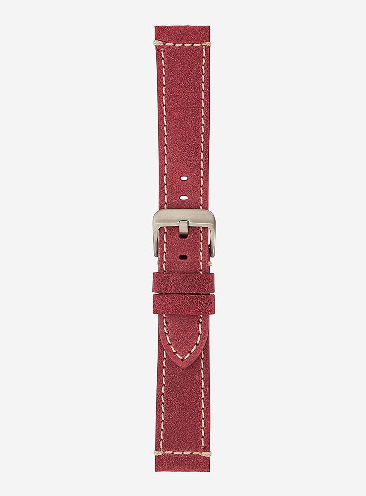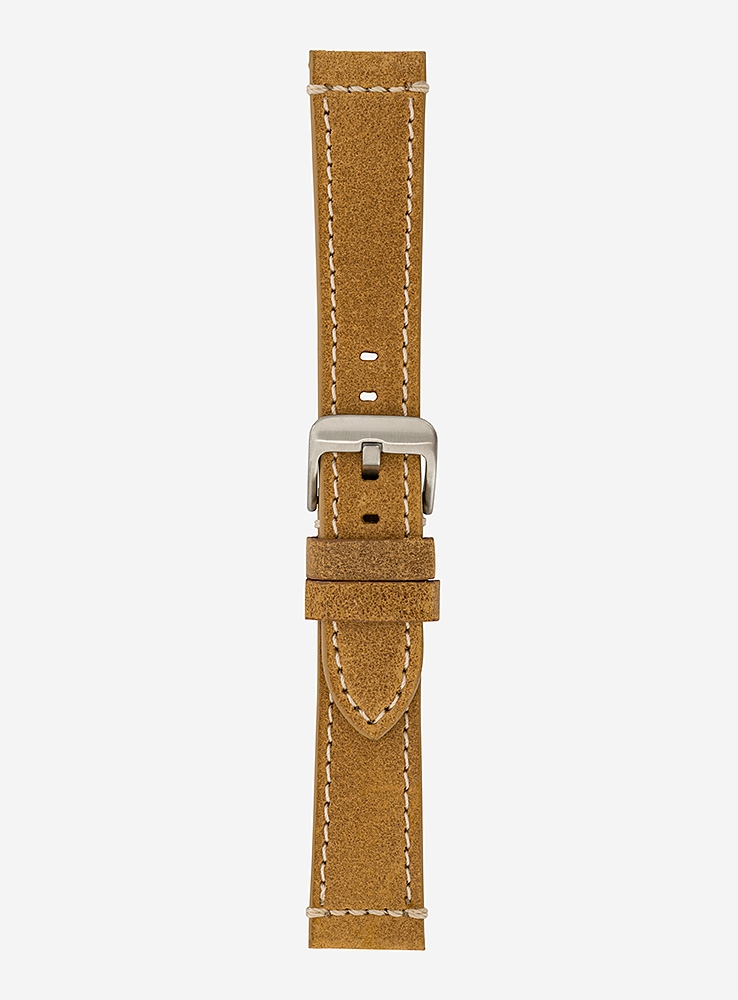Cinturino per orologio in cuoio vintage, pelle italiana. Fibbia in acciaio, fodera in vera pelle, finitura tranciata e struttura piatta con cuciture a contrasto.